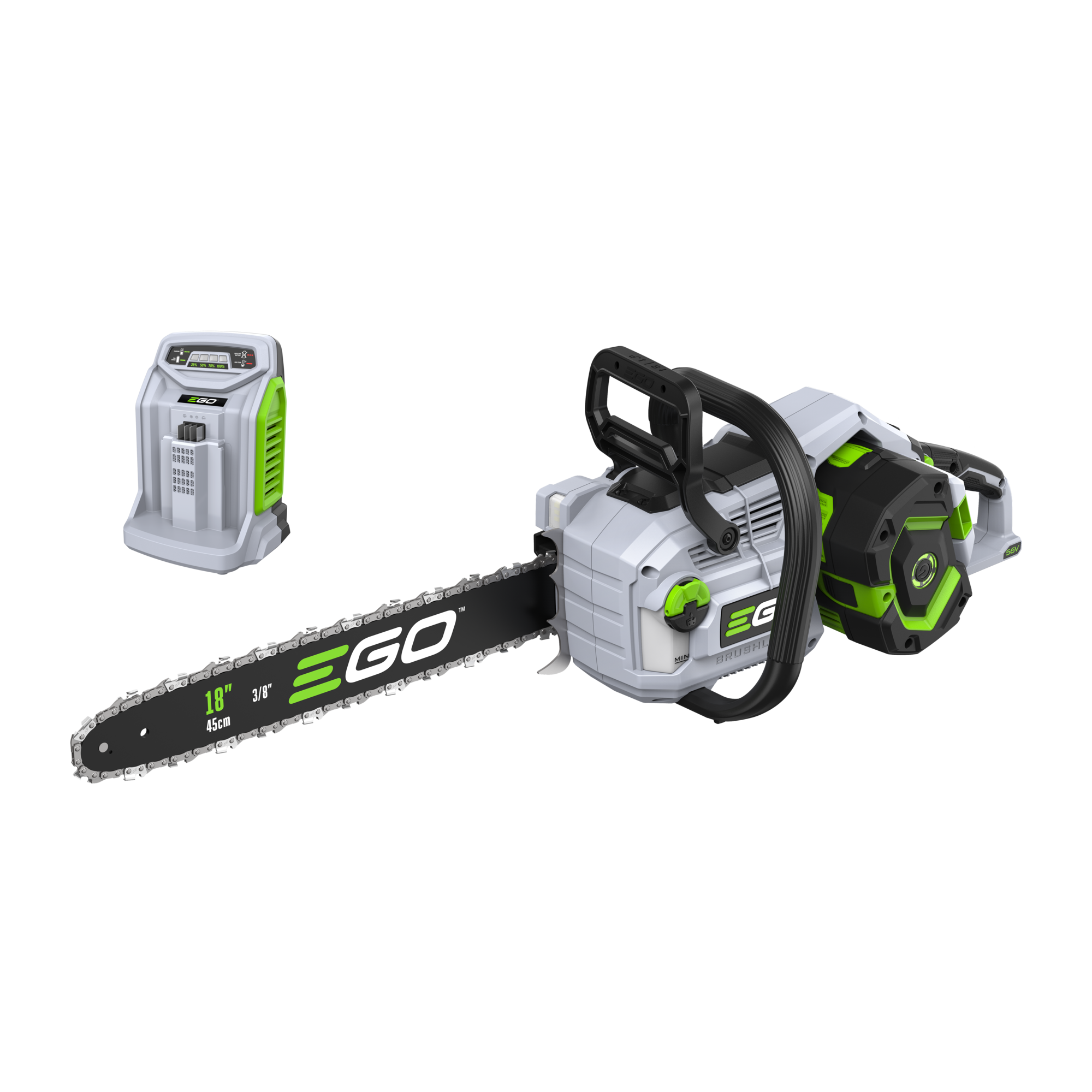 Na pohon pily lze použít jakoukoliv baterii ze sortimentu EGO a např. baterie 2,5Ah vám umožní uskutečnit až 110 řezů a s baterií 5,0Ah až 270 řezů. Naše lithiové baterie EGO Power+ 56V Arc Vám poskytnou dostatek energie pro pohon dostatečně výkonného a účinného bezuhlíkového elektromotoru s přímým náhonem na řetězku. Díky externímu umístění baterie mimo kapotáž pily je baterie efektivněji ochlazována. Pila je mimořádně tichá a sousedé Vás při práci ani neuslyší. Žádná napájecí šňůra, žádné provozní náplně, žádný hluk, žádný zápach. Nízká hmotnost, pohodlný úchop a snadná manipulace dělají z této řetězové pily vynikajícího pracanta nejenom na chalupě, ale i v rukou pracovníka obecní údržby zeleně.