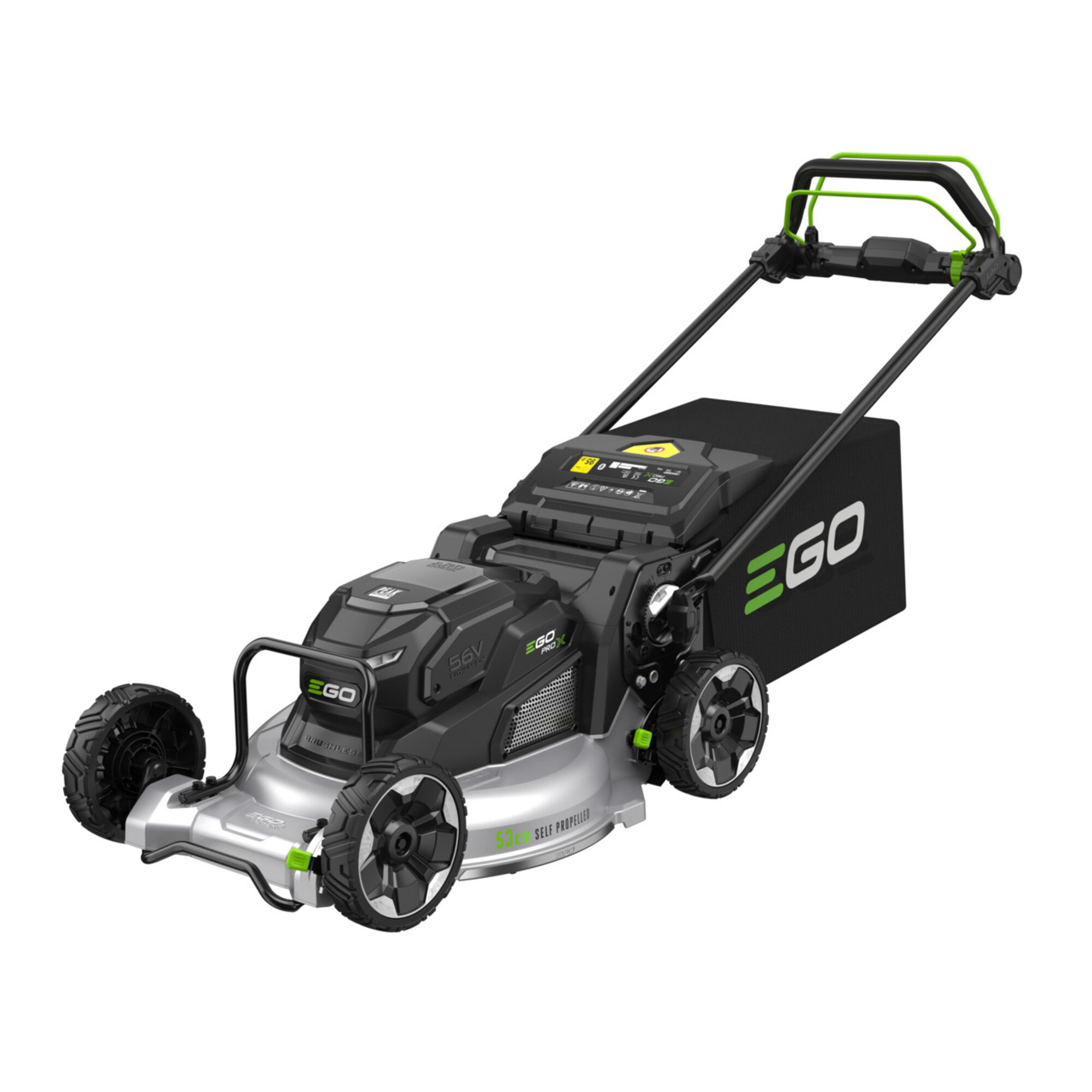 Max. kapacita je 2x12Ah, což je zásoba energie na posekání cca 3.000 m2. Rovnoměrný odběr z baterií a nabíjení, nehledě na jejich velikost, neustále hlídá a reguluje patentovaná technologie EGO, nazvaná "Peak PowerTM". Jakoukoliv baterii, kterou máte v sekačce můžete kdykoliv vyjmout a použít pro napájení jakéhokoliv dalšího stroje z nabídky EGO. Přes Bluetooth rozhraní je možnost připojení na dálku pomocí EGO Connect aplikace, což umožňuje uživateli nejenom sledovat výkon stroje ale také hlídat aktuální stav baterií tak, aby byla včas připraveny k práci. Za příplatek lze sekačku opatřit mulčovacím nožem a mulčovací záslepkou, které ještě zefektivňují, již tak dobré, mulčovací schopnosti sekačky. Naprostou novinkou na trhu, nejen AKU sekaček, je způsob výhozu trávy při sekání bez nasazeného sběrného koše. Ochranný deflektor v tomto případě nesměřuje trávu směrem dolů pod nohy obsluhy, ale směrem do strany vlevo po směru jízdy.
