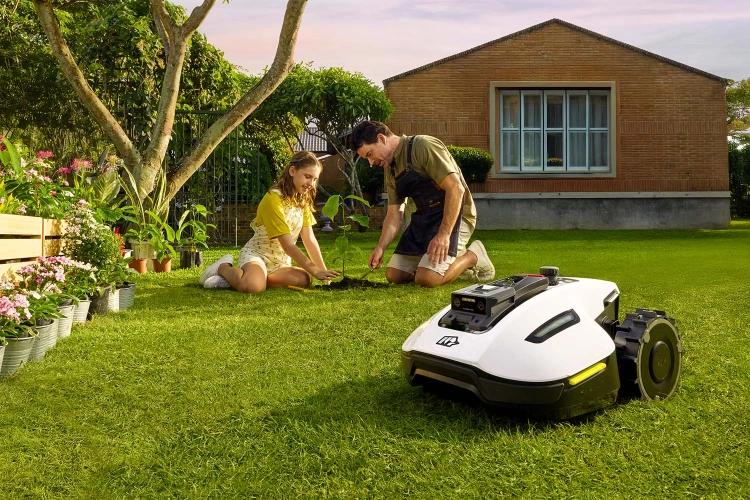 Po sečení se sekačka YUKA mini automaticky vrátí do nabíjecí základny.